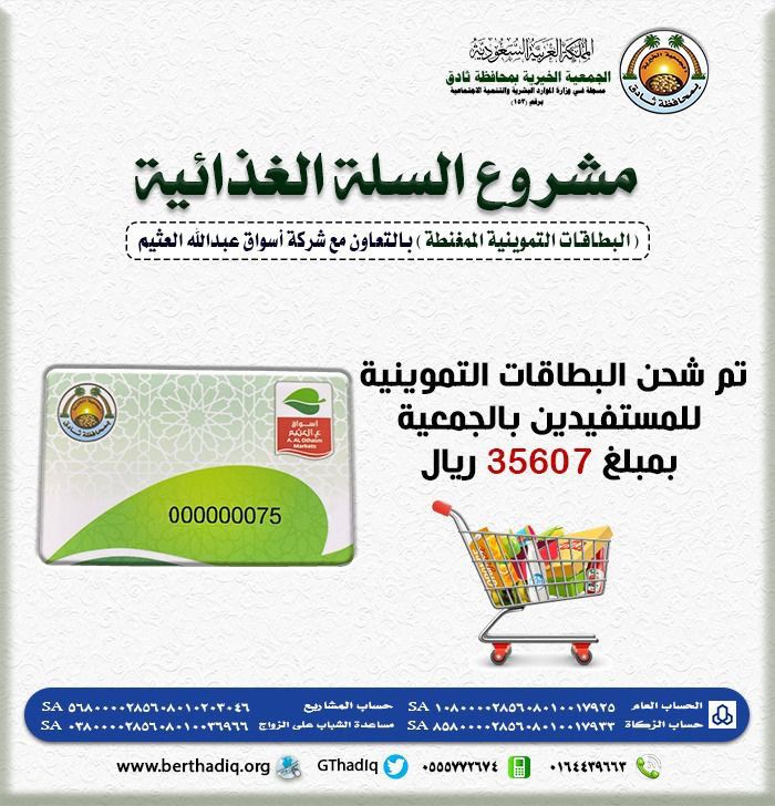 يسر الجمعية الخيرية بثادق أن تعلن عن تغذية ⁧‫#بطاقات_العثيم‬⁩ للأسر المستفيدة بالجمعية بمبلغ اجما ..