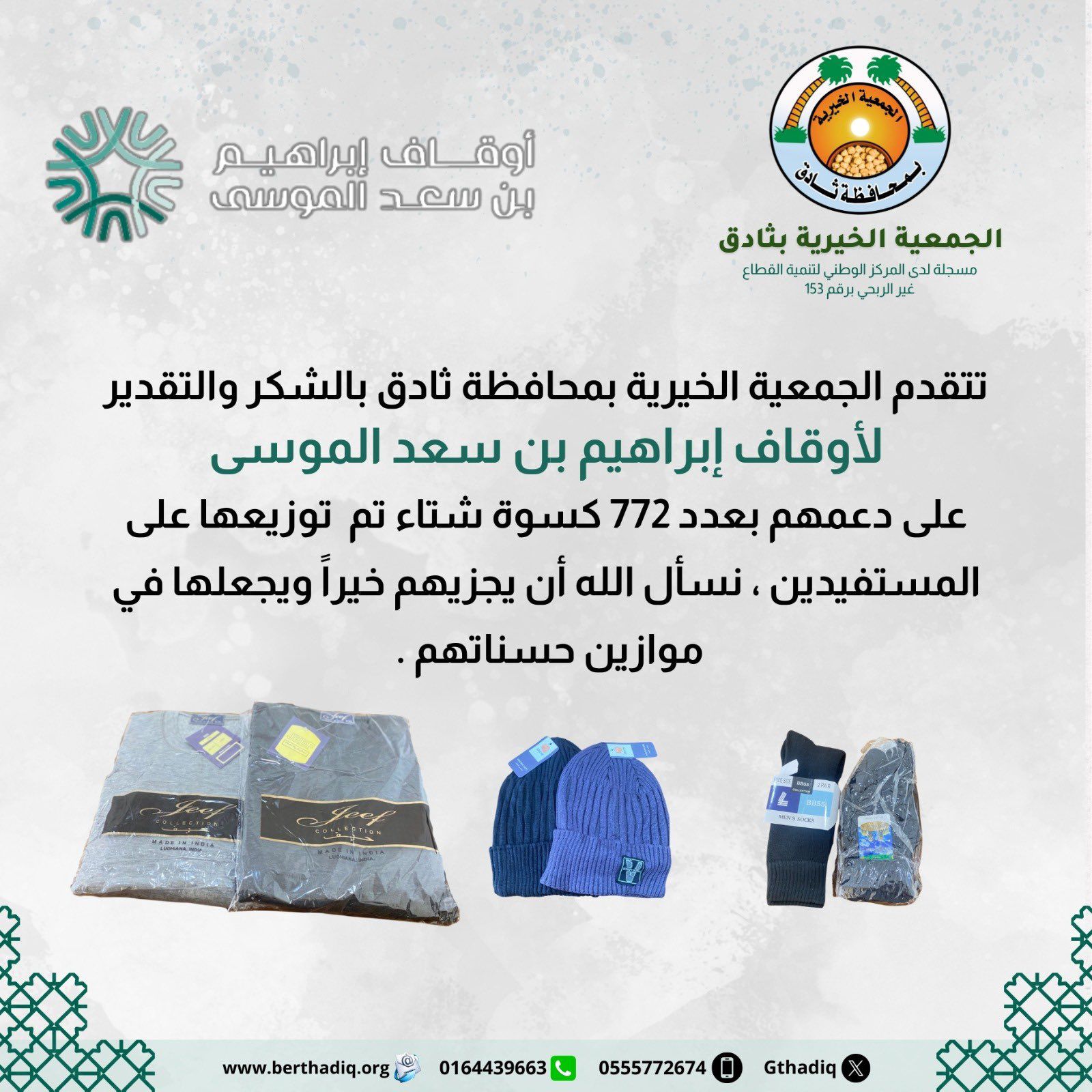 تتقدم #الجمعية_الخيرية_بمحافظة_ثادق بالشكر والتقدير لأوقاف الشيخ إبراهيم بن سعد الموسى - رحمه الله - على دعمهم ا ..